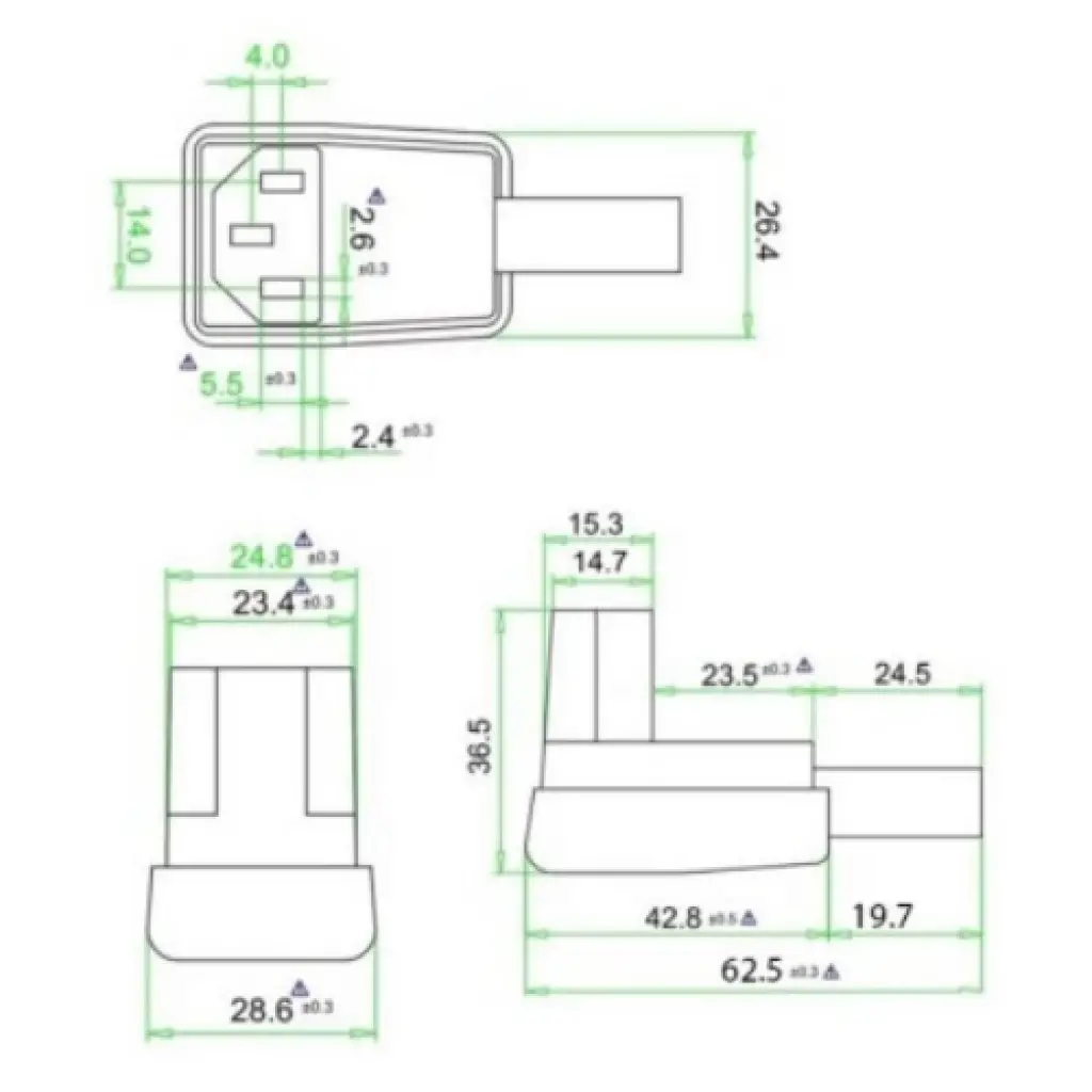 90 Derece Üçlü Dişi Power Soket Kablolanabilir Fiş
