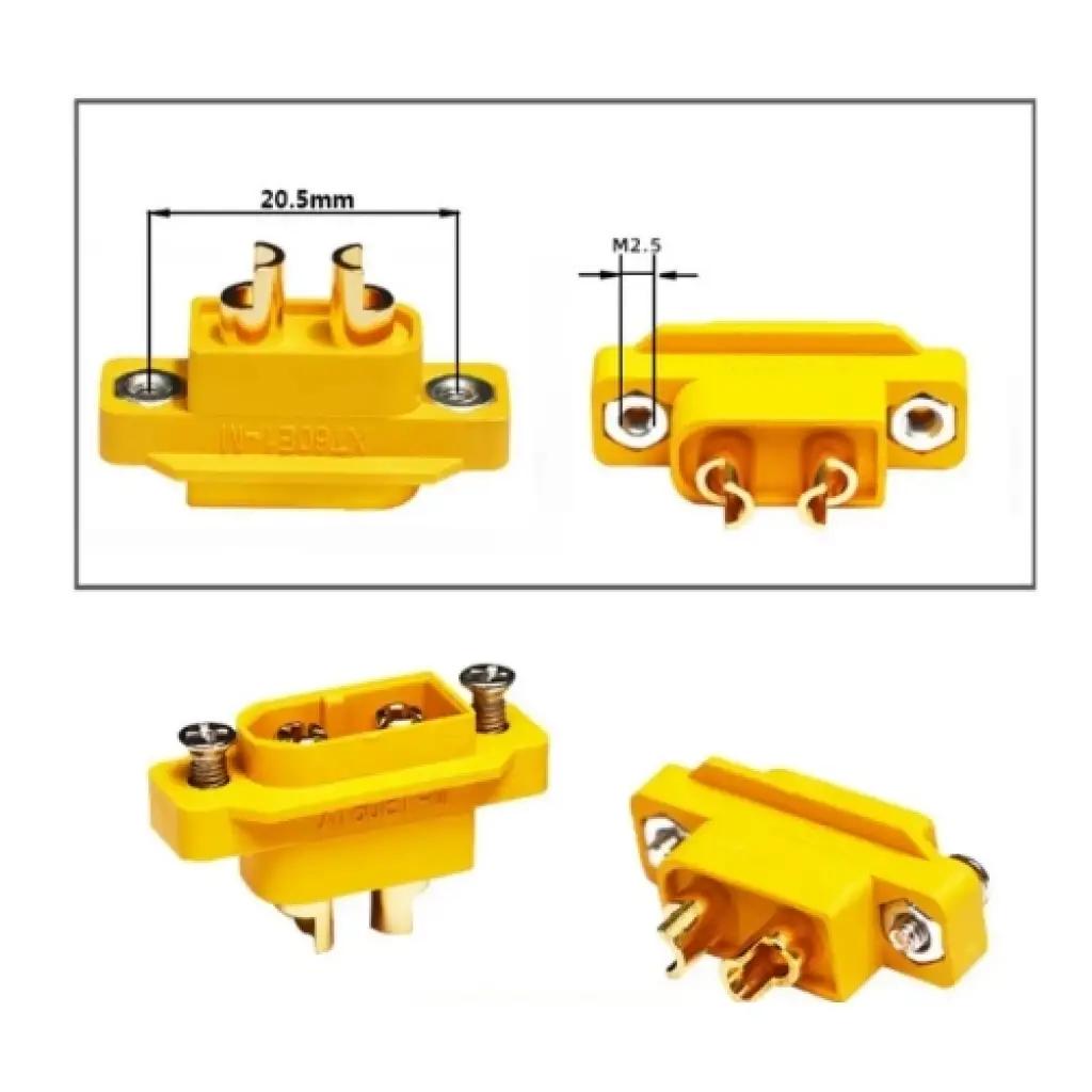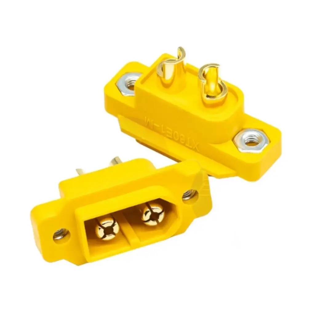 Amass Panel Tipi Erkek XT60 Soket (XT60E-M),bir tür güç konektörüdür ve erkek bağlantı elemanıdır.