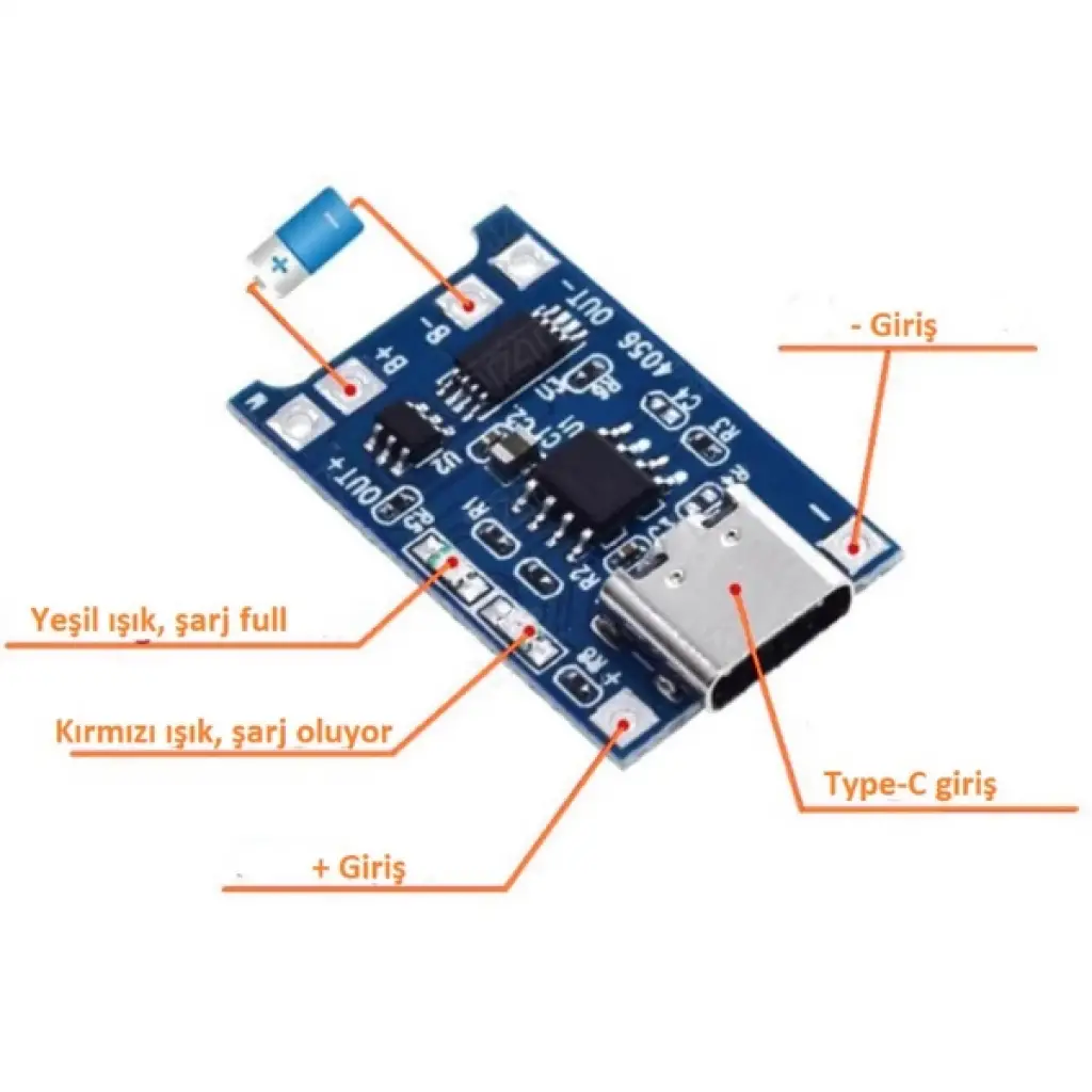TP 4056 şarj modülü; 3.7V (1S) değerindeki lityum pilleri şarj etmenize olanak sağlayan bir şarj devresidir.